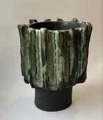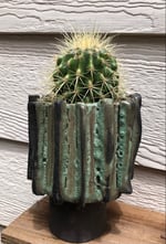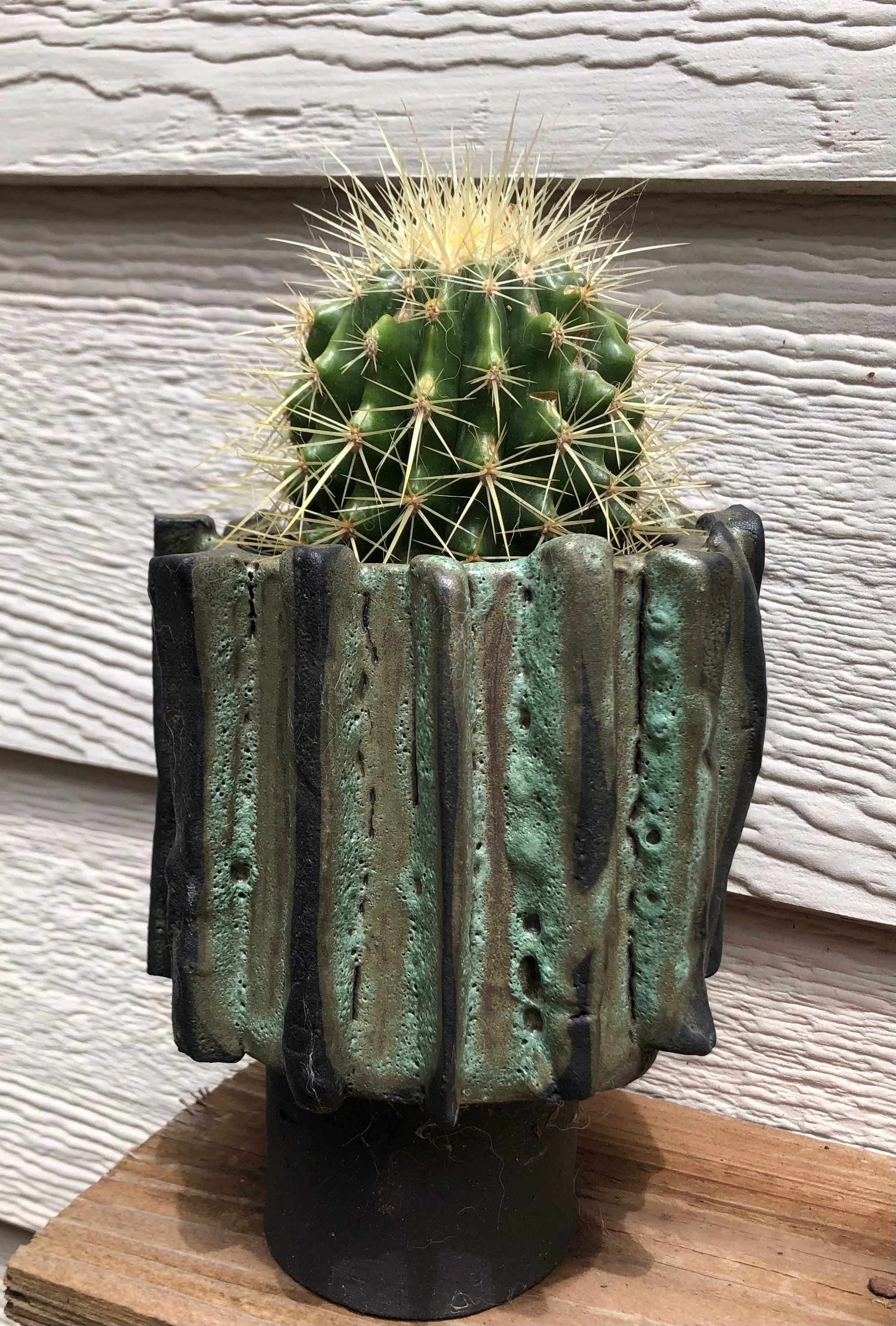 Hand built planter with raw black clay and turquoise glaze. 6.5” h c 5”w